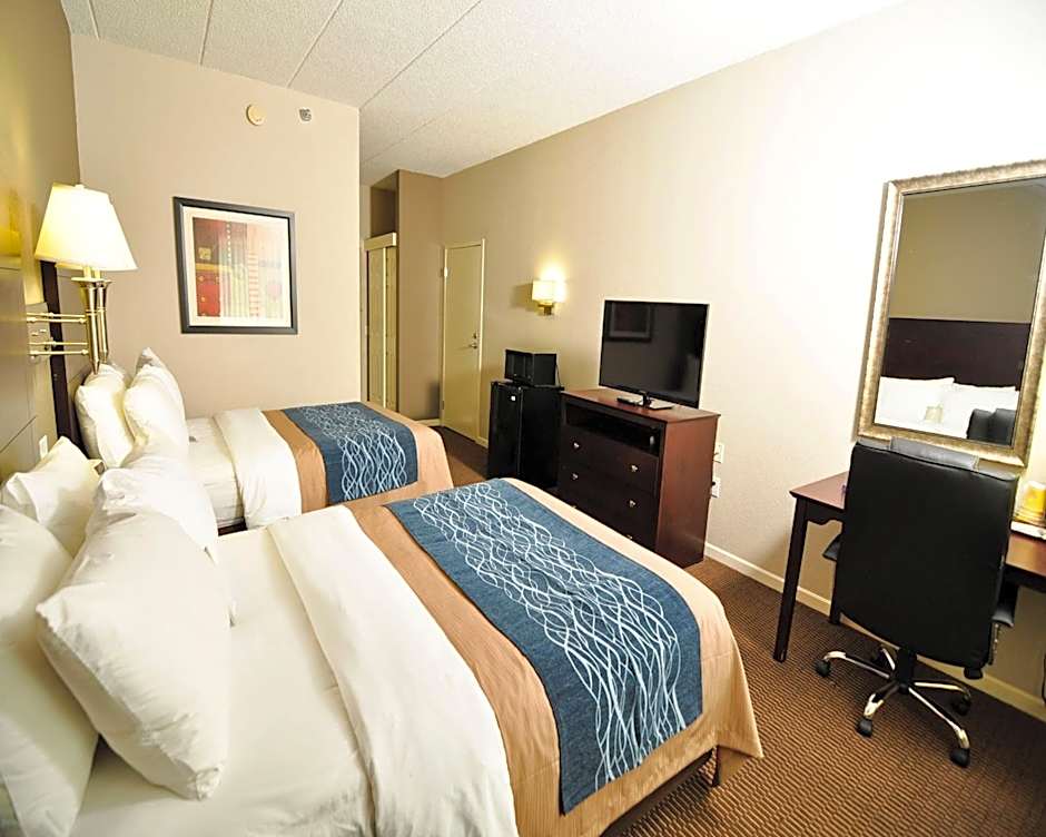 This room includes a flat-screen TV with premium cable channels, microwave and refrigerator. Guests will also find a desk and ergonomic chair.